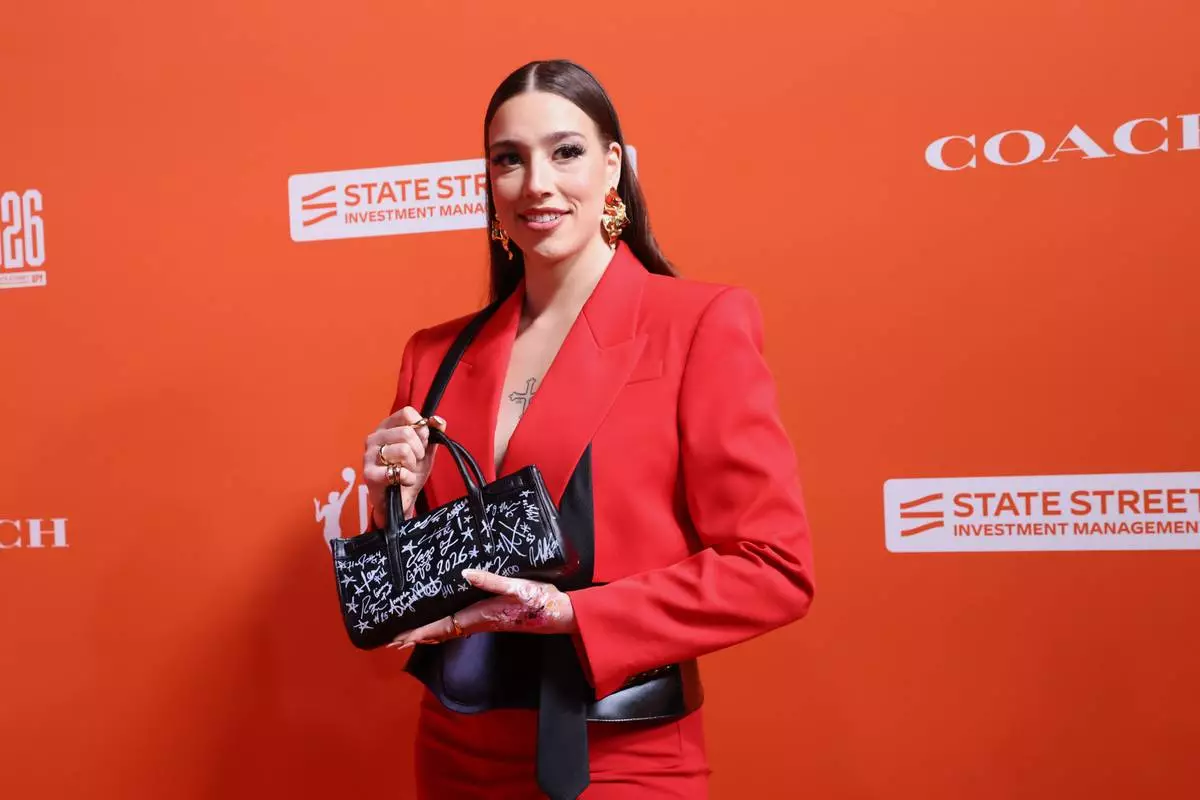 Texas Christian forward Marta Suarez, of Spain, poses before the WNBA basketball draft Monday, April 13, 2026, in New York. (AP Photo/Pamela Smith)