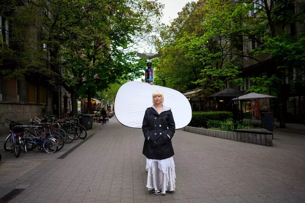 Dori Szaday, 22, poses for a portrait in Budapest, Hungary, Monday, April 13, 2026. "There's a belief that Hungarians are willing to put up with anything. We finally proved that wrong." (AP Photo/Petr David Josek)