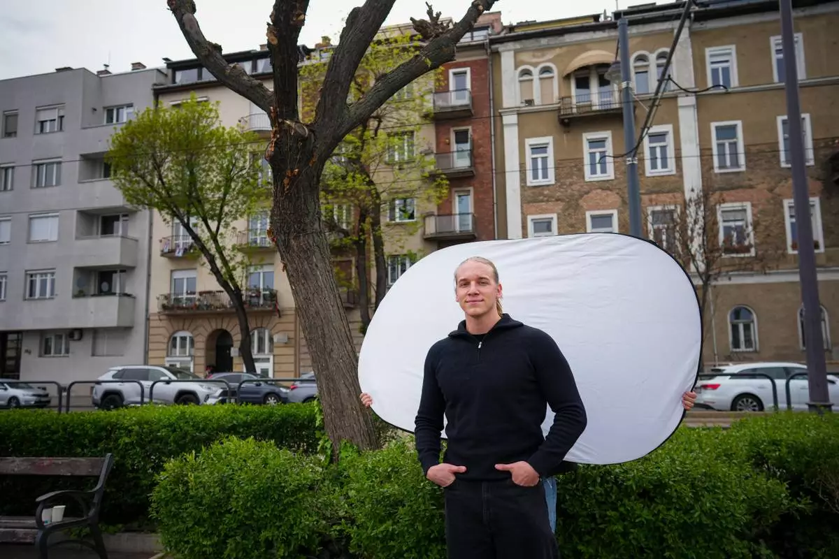 Patrik Gal, 23, poses for a portrait in Budapest, Hungary, Monday, April 13, 2026. "It's about getting a fresh start and seeing what it could bring for us." (AP Photo/Petr David Josek)