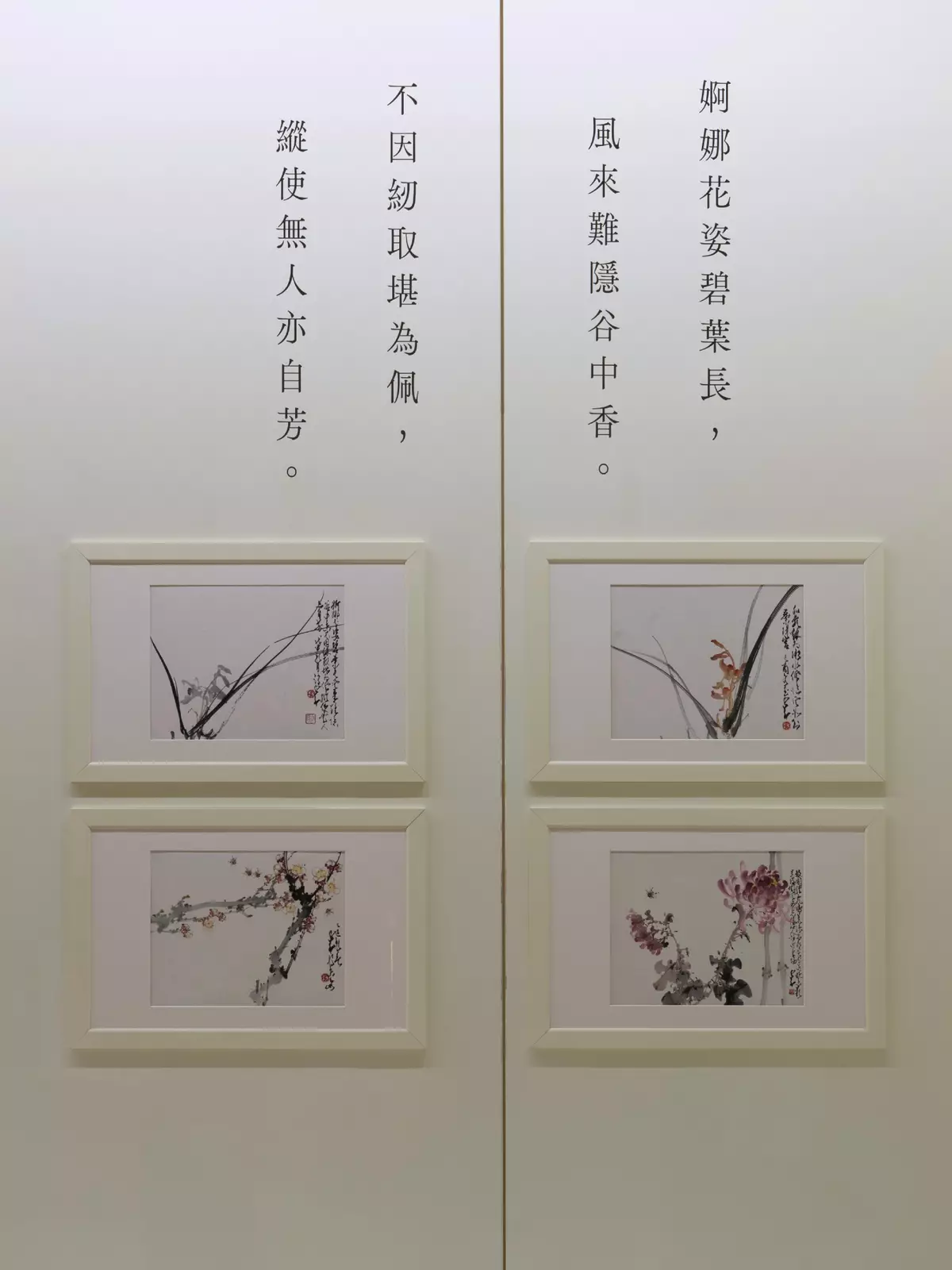 The exhibition focuses on ProfessorChao's floral paintings with poems, showcasing multiple layers of meaning in his works. In paintings "Bird on Winter Pine", "Weeping Cicada in Chilly Wind", "Plum Blossoms", and "Orchid", ProfessorChao took pine trees, bamboo, plum blossoms, and orchids, and imbued them with noble virtues. By incorporating ancient poems into his portrayals of crab apple blossoms after the rain, magnolia flowers in winter and apricot blossoms blowing in the wind, ProfessorChao fuses natural beauty and literary sentiment on sheets of paper. The exhibition offers visitors a chance to feel as if they are in the splendid world of the master's ink art, and experience the poetic artistry embodied in the works.
