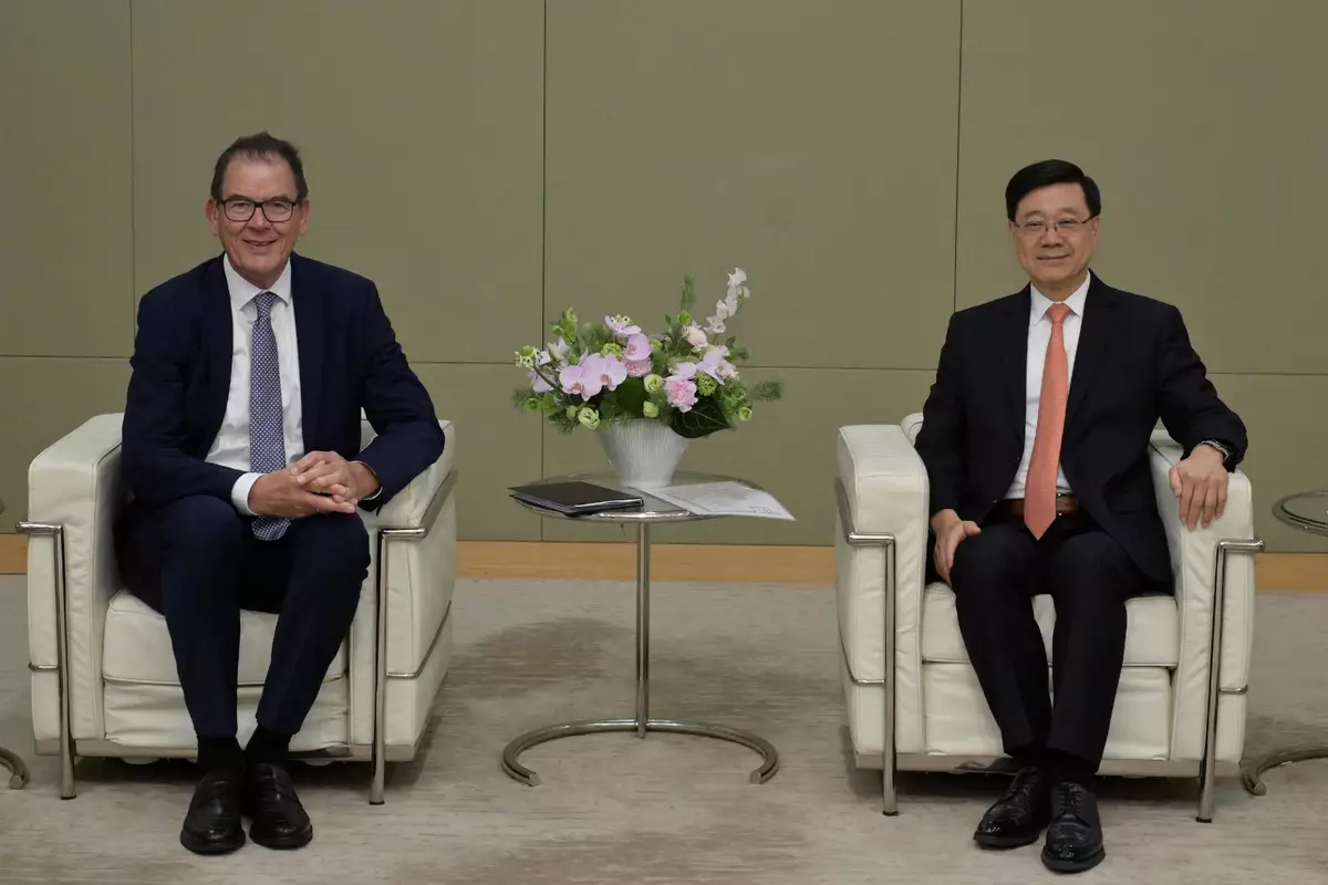 The Chief Executive, Mr John Lee, met with the Director General of the United Nations Industrial Development Organization (UNIDO), Dr Gerd Müller, at the Central Government Offices today (April 14), to exchange views on strengthening co-operation of both sides in industrial development, and to witness the signing of a joint statement on collaboration to advance industrial development, innovation and digital transformation by the Innovation, Technology and Industry Bureau and UNIDO. The Deputy Commissioner of the Office of the Commissioner of the Ministry of Foreign Affairs in the Hong Kong Special Administrative Region (HKSAR), Mr Li Yongsheng, also attended.