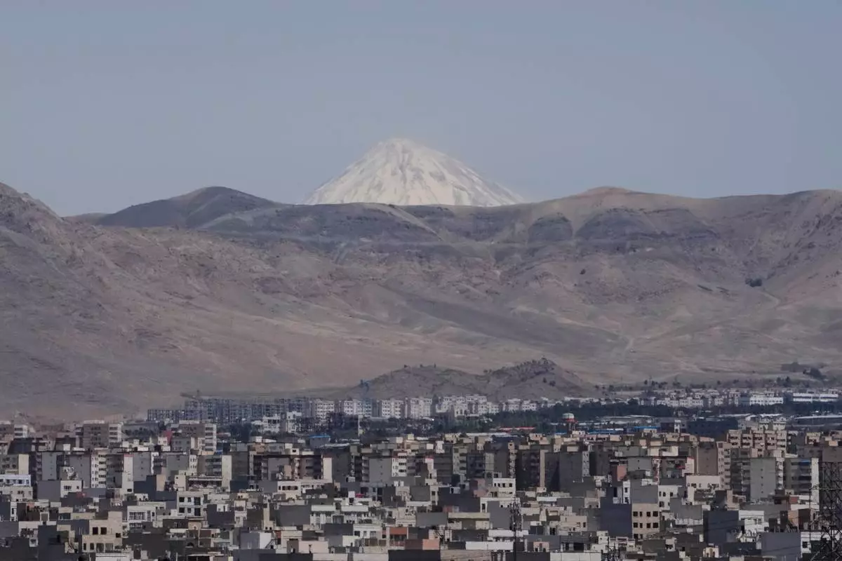 Damavand Peak, the highest peak in Iran, is seen overlooking southeastern Tehran, Tuesday, April 14, 2026. (AP Photo/Vahid Salemi)
