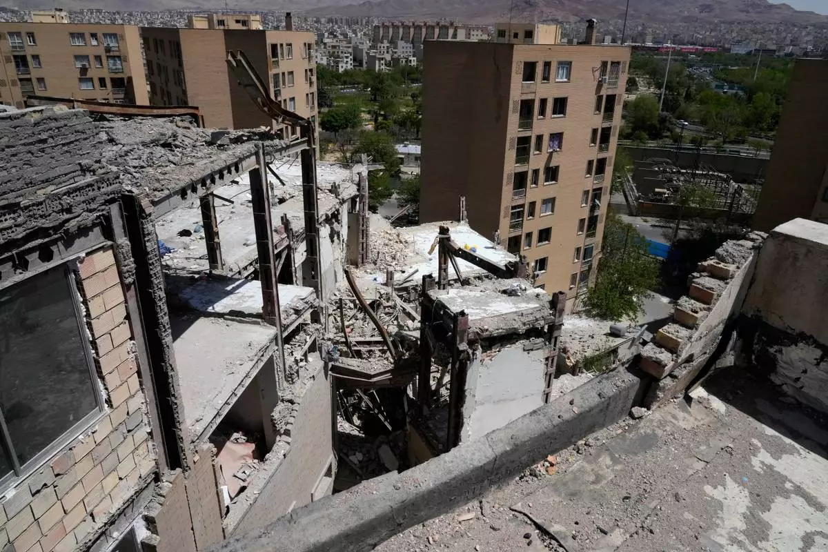 Damage is visible on a residential building that, according to Iranian authorities, was hit by a strike on March 4 during the U.S.-Israeli military campaign, in southeastern Tehran, Iran, Tuesday, April 14, 2026. (AP Photo/Vahid Salemi)