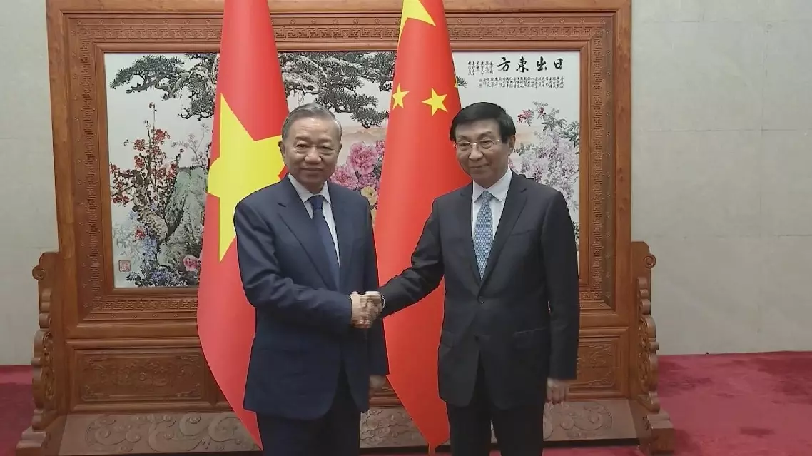 China's top political advisor Wang Huning met with To Lam, general secretary of the Communist Party of Vietnam Central Committee and president of Vietnam, on Tuesday in Beijing.