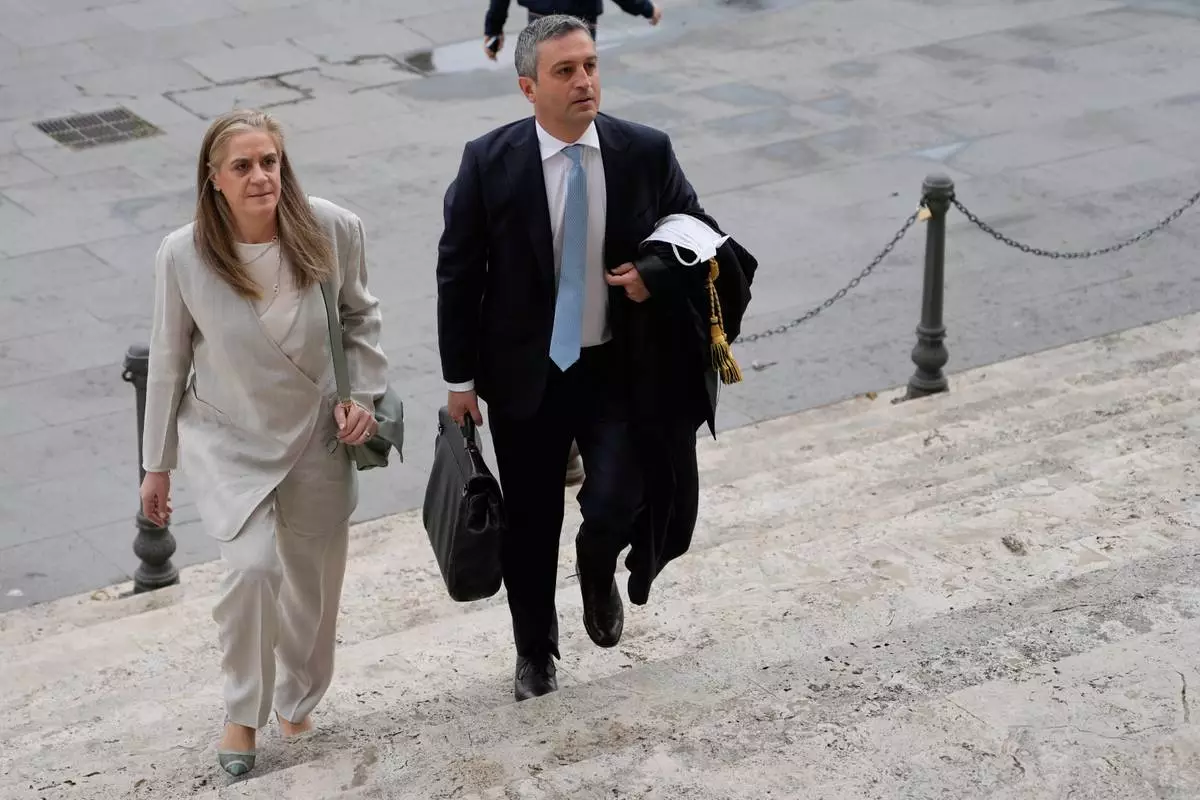 Italian lawyers Marco Mellone, right, and Graziella Cerulli arrive at Italy's highest Court of Cassation, in Rome, Tuesday, April 14, 2026, to argue against the new citizenship law that restricts citizenship by descent. (AP Photo/Gregorio Borgia)