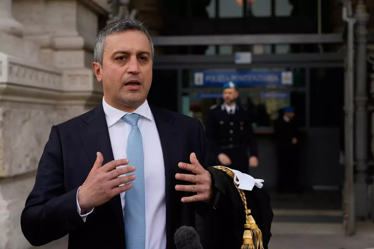 Italian Lawyer Marco Mellone, is interviewed by the Associated Press outside Italy's highest Court of Cassation, in Rome, Tuesday, April 14, 2026, prior to the start of a hearing to argue against the new citizenship law that restricts citizenship by descent. (AP Photo/Gregorio Borgia)