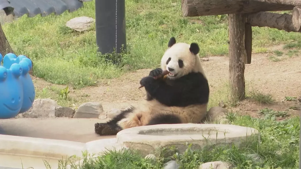 Caretakers at the center say giant pandas start eating tender bamboo leaves at around seven to eight months old to build bite strength. By the time they are just over two years old, they can eat bamboo shoots without difficulty.