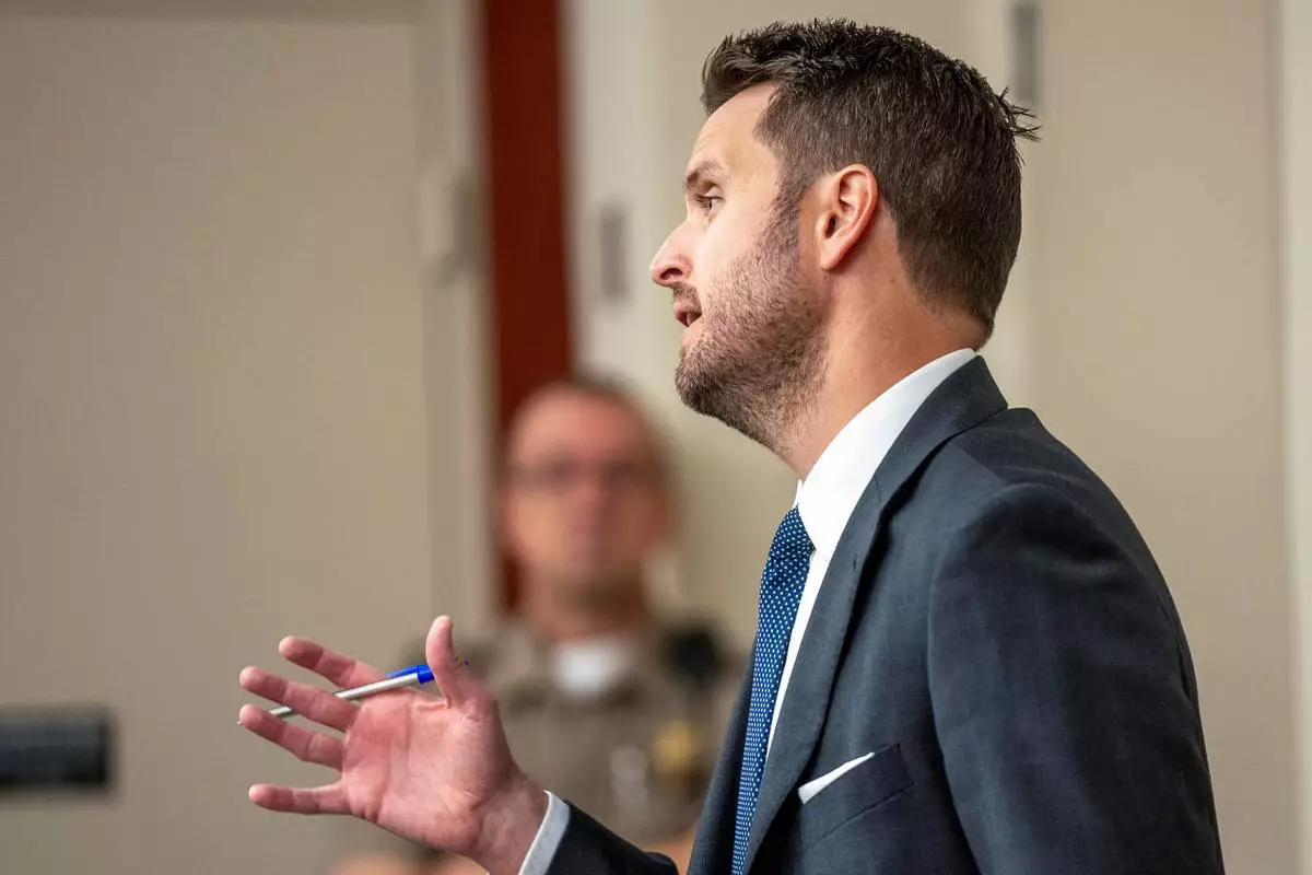 Attorney Eric Swinyard speaks during a hearing on a protective order sought by a former partner against Taylor Frankie Paul, in 3rd District Court in Salt Lake City, Tuesday, April 7, 2026. (Rick Egan/The Salt Lake Tribune via AP, Pool)