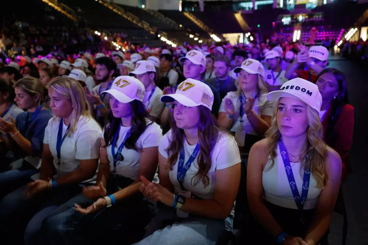 Many of the college-age attendees donned Turning Point attire, Trump hats and red-white-and-blue paraphernalia for the event. Yet they were outnumbered more than 2-to-1 by empty seats in what is not even the largest arena on this sprawling campus that sits about a 90-minute drive from downtown Atlanta.