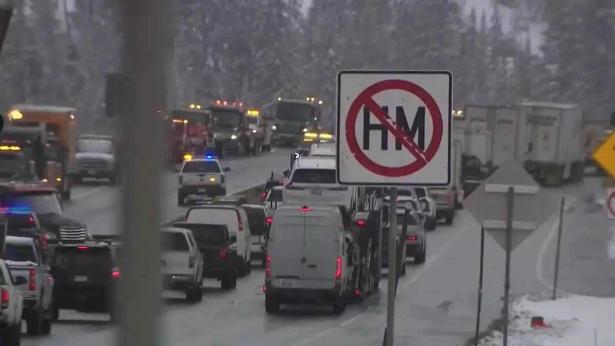 The pileup Tuesday prompted officials to close the eastbound side of Interstate 70 in Clear Creek County, about 50 miles (80 kilometers) west of Denver, the Colorado State Patrol said in a statement.