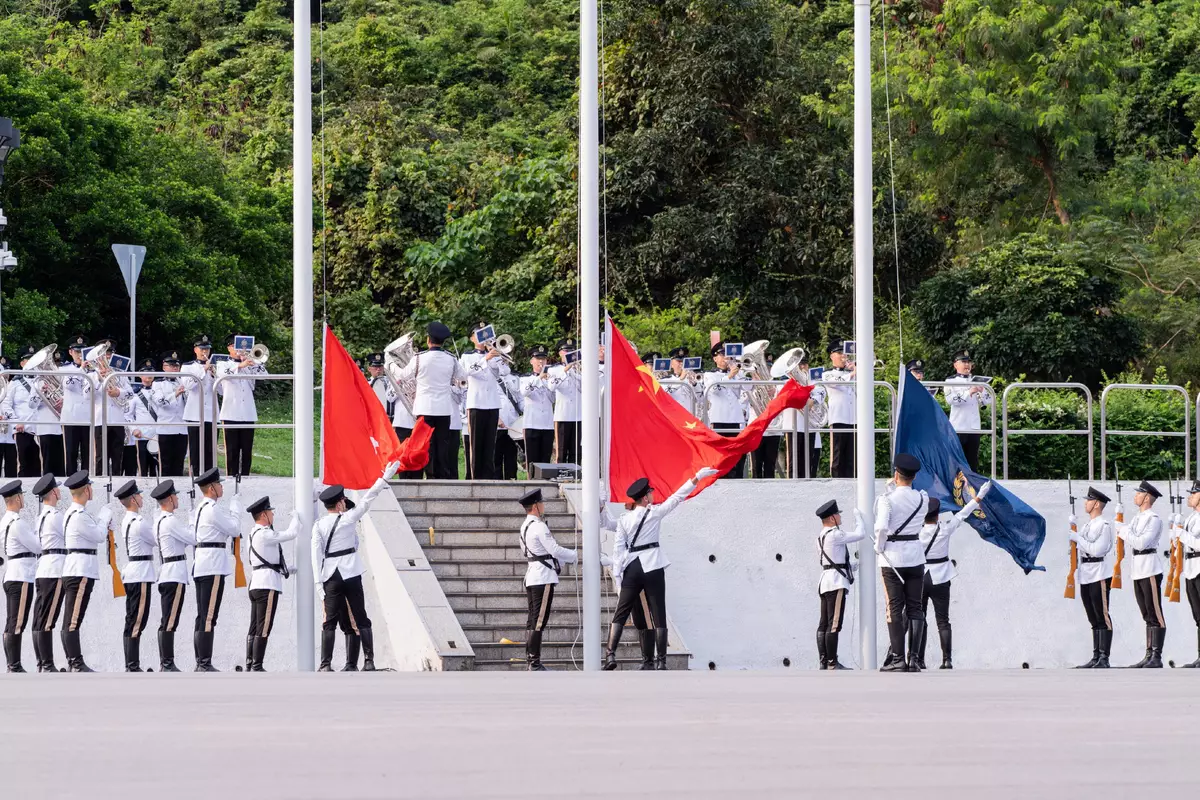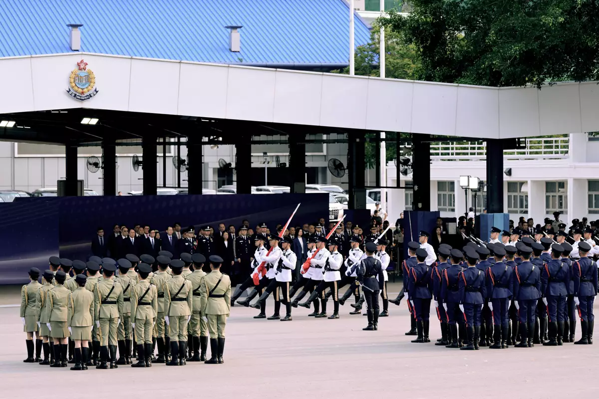The SB and its disciplined services jointly held a flag-raising ceremony at the Hong Kong Police College this morning. The ceremony started with a music performance by the Hong Kong Police Band, followed by a march-in of the disciplined services ceremonial guard. The Police flag party then marched into the venue and conducted the flag-raising ceremony to the playing and singing of the national anthem. Officiating at the ceremony, the Chief Secretary for Administration, Mr Chan Kwok-ki, said that the theme of this year's National Security Education Day, "Proactively Align with the 15th Five-Year Plan Follow a Holistic Approach to Development and Security", aimed to remind Hong Kong to better integrate into and serve the overall national development, and to contribute Hong Kong's strengths and commitment to the journey of the country's modernisation.