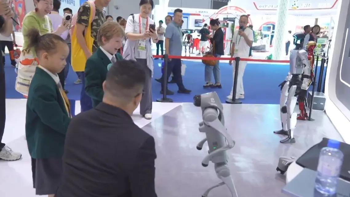 In the high-tech zone, robot dogs and humanoid robots are the star attractions.