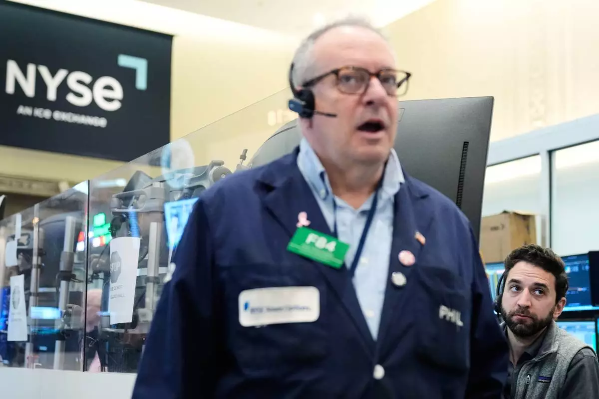 People work on the floor at the New York Stock Exchange in New York, Monday, April 13, 2026. (AP Photo/Seth Wenig)