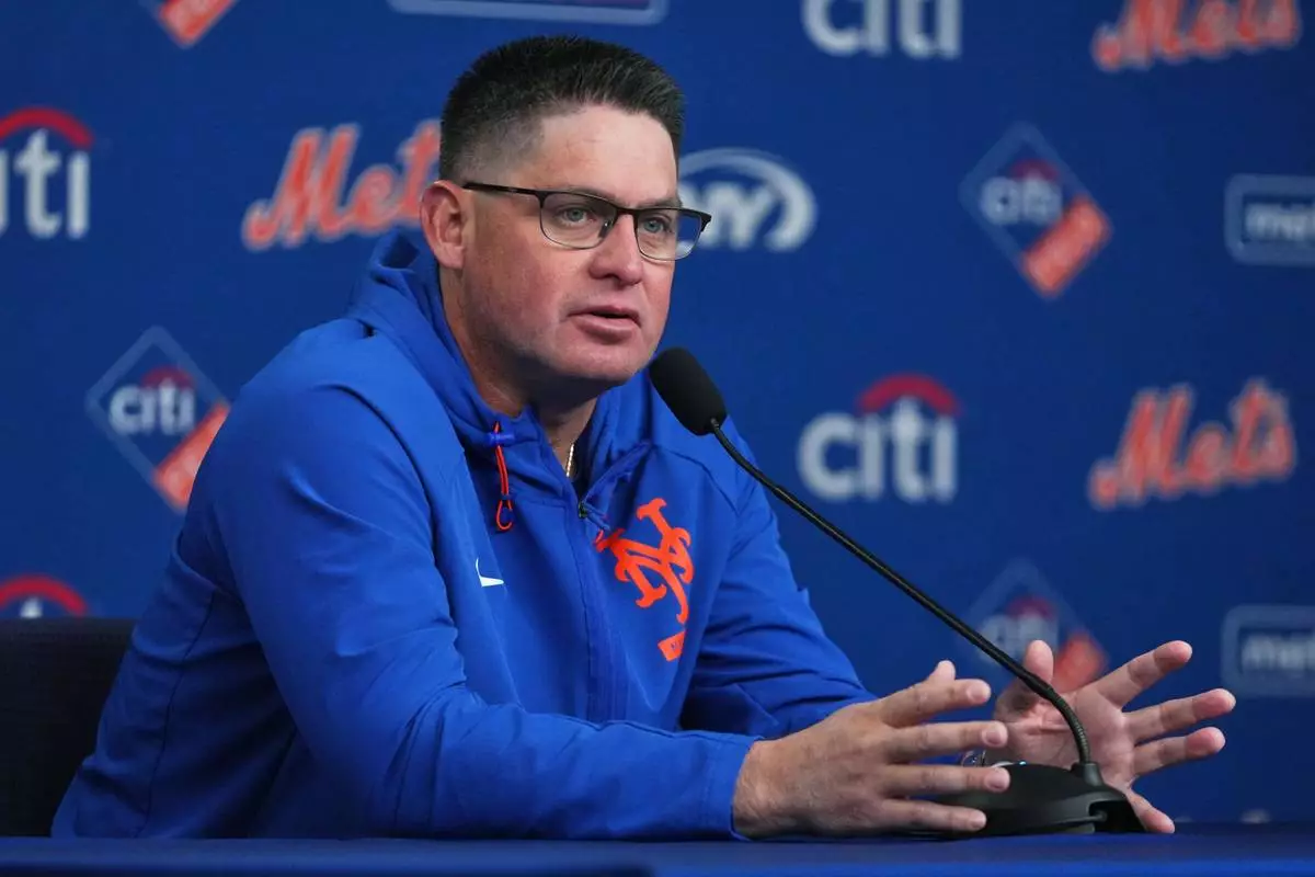 New York Mets manager Carlos Mendoza speaks during a news conference before a baseball game against the Arizona Diamondbacks Tuesday, April 7, 2026, in New York. (AP Photo/Frank Franklin II)