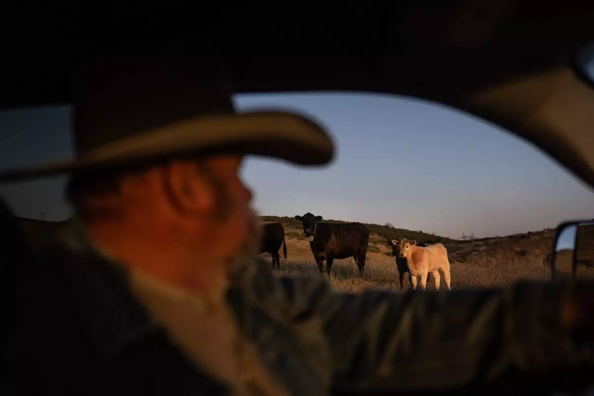 Mike Williams, owner of Diamond W Cattle Company, drives past cattle on his ranch in Palmdale, Calif., Friday, April 3, 2026. (AP Photo/Jae C. Hong)