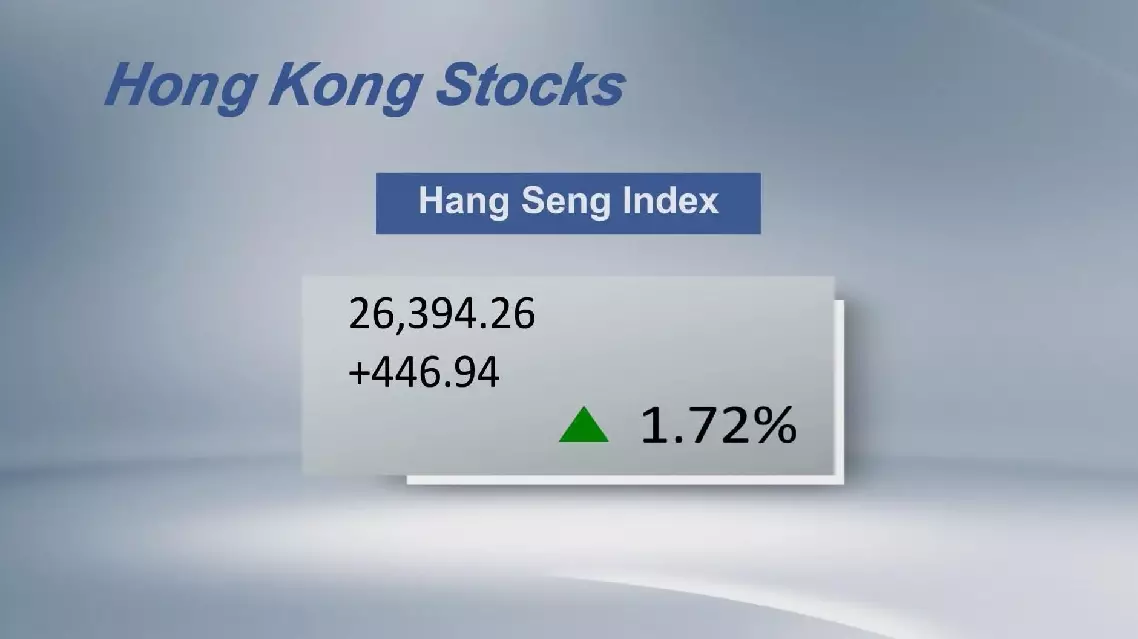 The Hang Seng China Enterprises Index jumped 2.14 percent to end at 8,905.11 points, and the Hang Seng Tech Index surged 3.67 percent to 5,092.08 points.