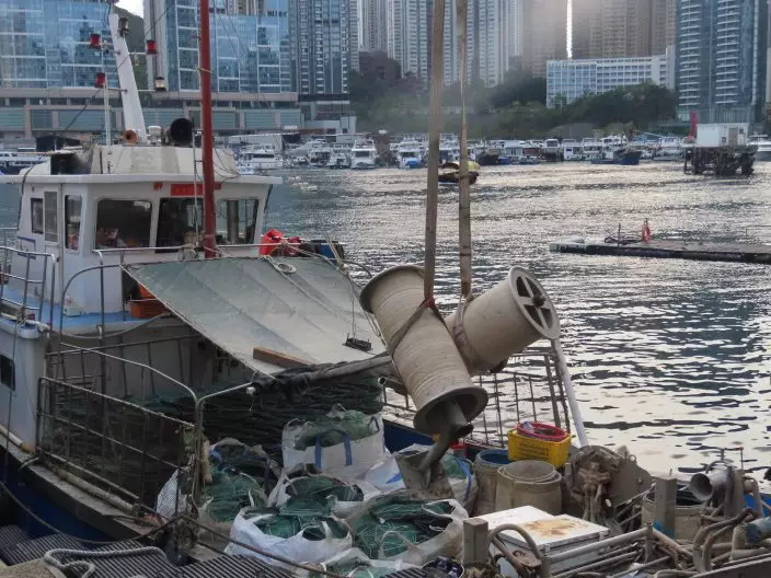 The Agriculture, Fisheries and Conservation Department today (April 16) laid charges against a local coxswain and four Mainland fishermen deckhands suspected of engaging in fishing using snake cages on a local vessel in waters off Lamma Island. Photo shows the local vessel concerned. Source: HKSAR Government Press Releases