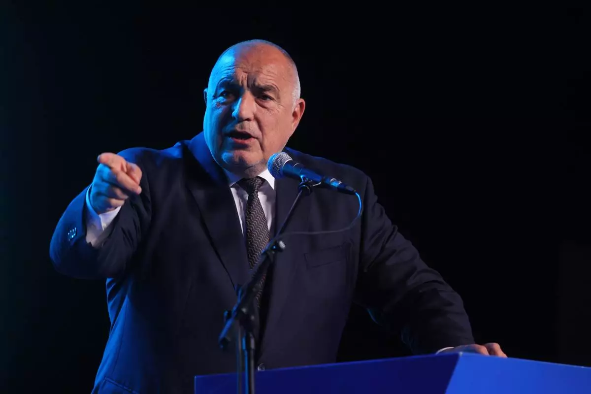 Former three-time conservative Prime Minister Boyko Borissov delivers a speech at the closing rally of his campaign, in Samokov, Bulgaria, Wednesday, April 15, 2026. (AP Photo/Valentina Petrova)