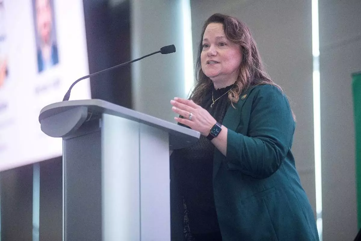 Pictured: Avangrid Deputy CEO Kim Harriman accepting awards at Economic Impact Awards Ceremony. Photo Courtesy of MassEcon.