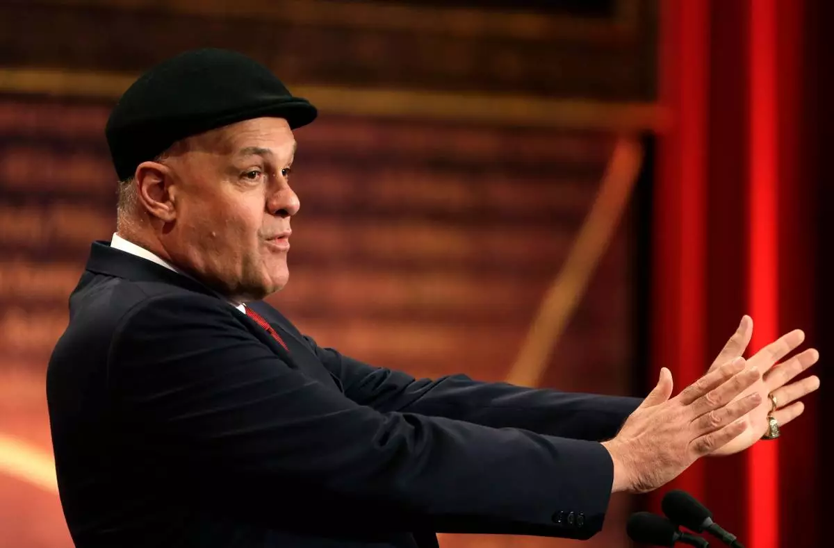 FILE - Inductee Oscar Schmidt, of Brazil, speaks during the enshrinement ceremony for the 2013 class of the Naismith Memorial Basketball Hall of Fame at Symphony Hall in Springfield, Mass., Sept. 8, 2013. Schmidt, whom his Brazil compatriots know as the “Holy Hand,” died. Friday, April 17, 2026. He was 68. (AP Photo/Steven Senne, File)