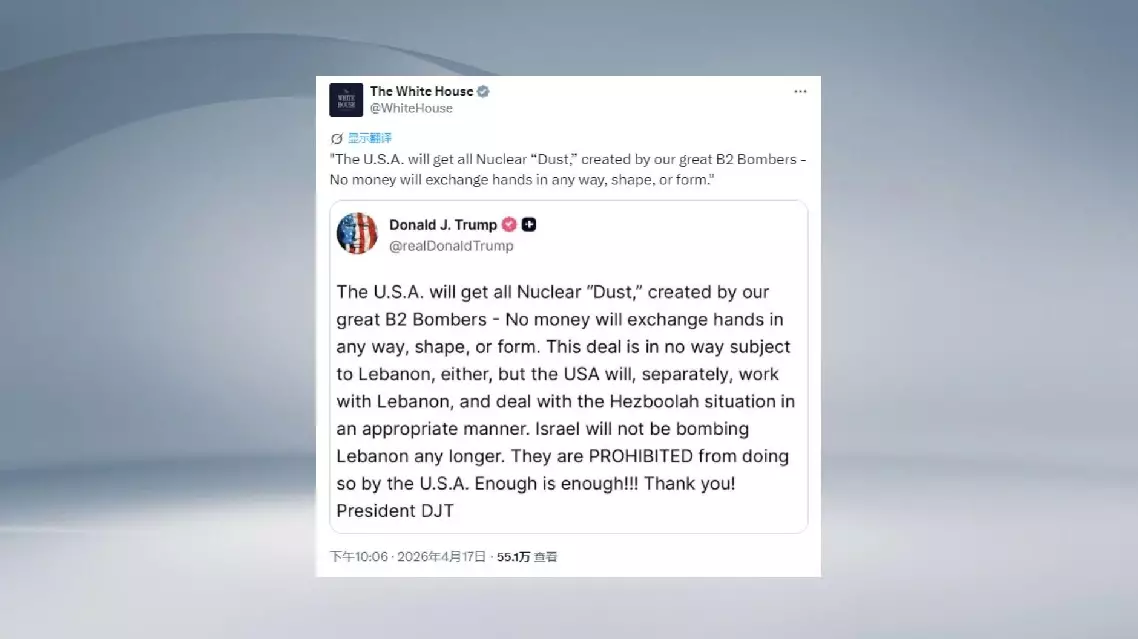 In a post on Truth Social on Friday, Trump claimed the United States would obtain all of Iran's enriched uranium, which he referred to as "nuclear dust" created by U.S. B2 bombers, without making any payment. "No money will exchange hands in any way, shape, or form," Trump wrote.