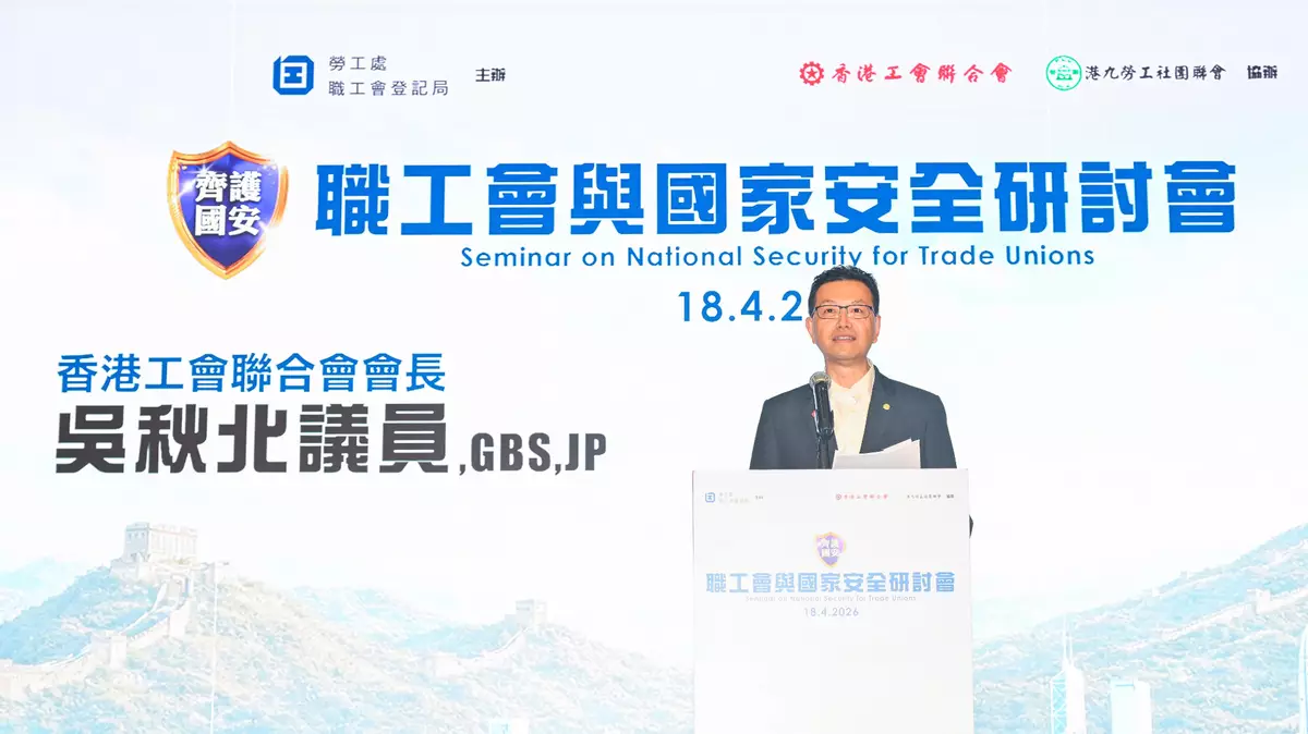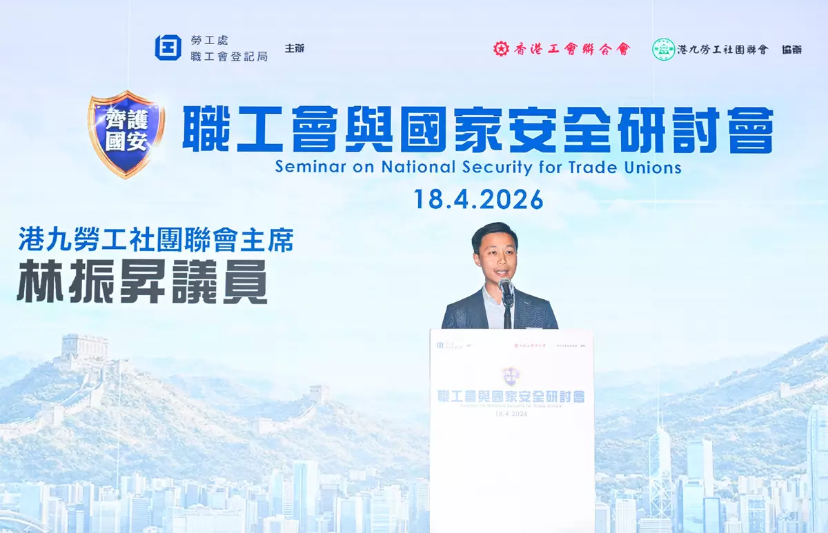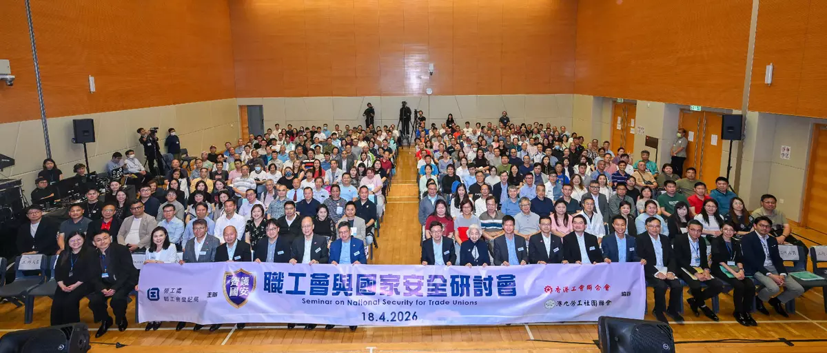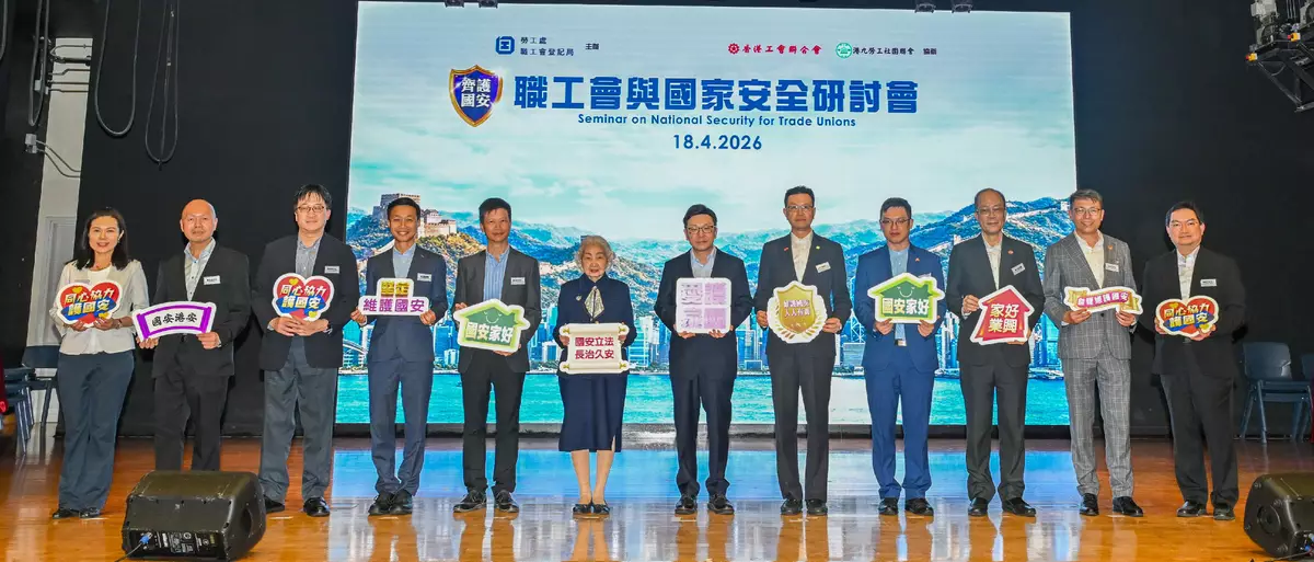 The Registry of Trade Unions (RTU) of the Labour Department organised the Seminar on National Security for Trade Unions (the Seminar) today (April 18) to enhance the awareness and sense of responsibility of trade unions in safeguarding national security. The Seminar featured exchanges of measures taken by the labour sector to safeguard national security, contributing to the security and development of the country and Hong Kong. Co-organised by the Hong Kong Federation of Trade Unions and the Federation of Hong Kong and Kowloon Labour Unions, the Seminar attracted around 420 participants on-site and online.