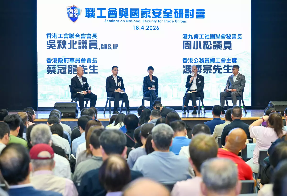 Moreover, the Seminar included a panel discussion session in which four guests, namely, Mr Ng; the General Secretary of the Federation of Hong Kong and Kowloon Labour Unions and LegCo Member, Mr Chau Siu-chung; the President of the Hong Kong Chinese Civil Servants' Association, Mr Tsoi Koon-lung; and the Chairman of the Hong Kong Civil Servants General Union, Mr Fung Chuen-chung, shared the measures and practical experiences of labour organisations and trade unions in promoting national security education.