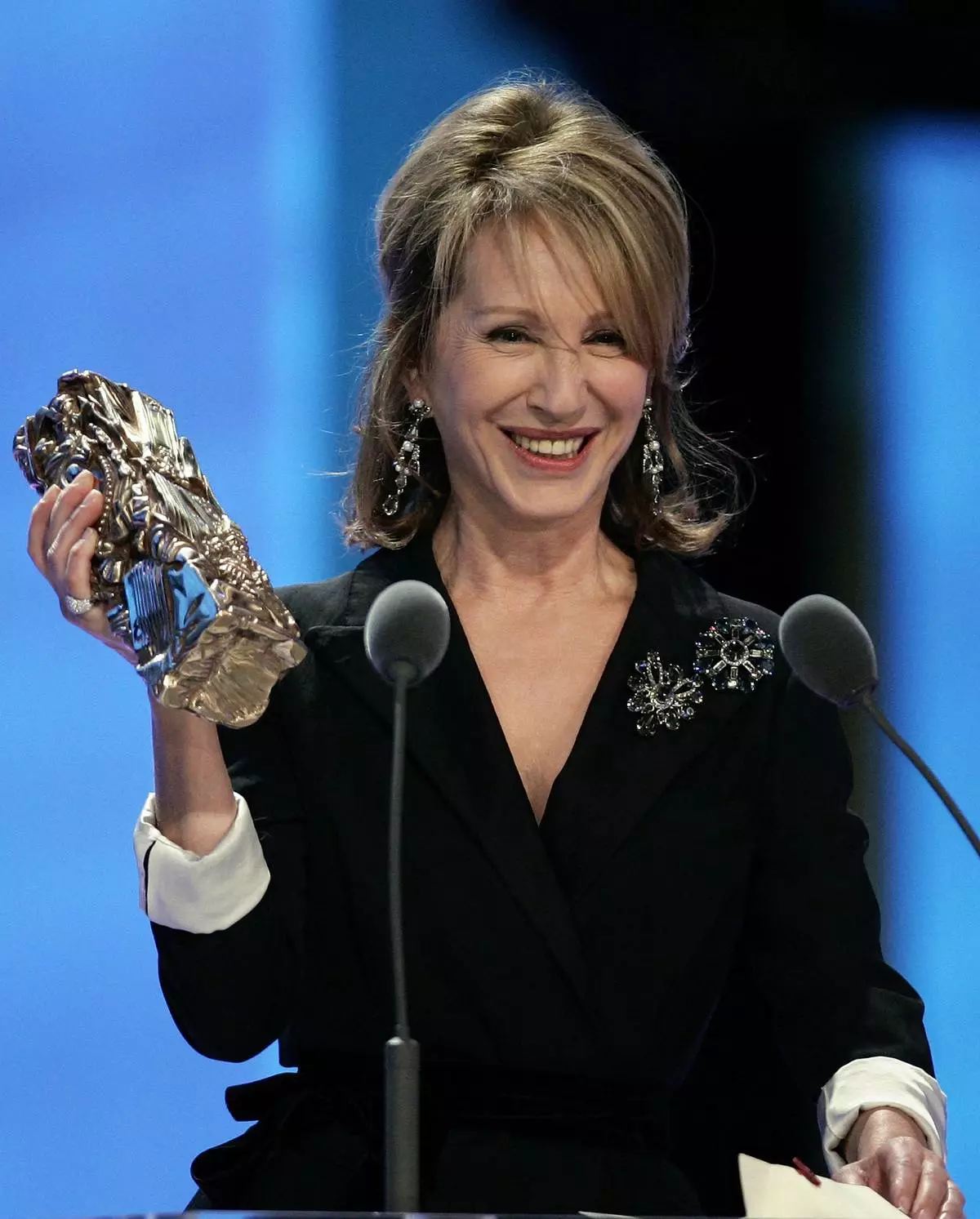 FILE - French actress Natalie Baye acknowledges applause after she received a Cesar award for her performance as best actress, Feb. 25, 2006 during the Cesars Awards, the French Academy Awards in Paris. Baye was awarded for her performance in French director's Xavier Beauvois "Le petit Lieutenant". (AP Photo/Francois Mori, File)