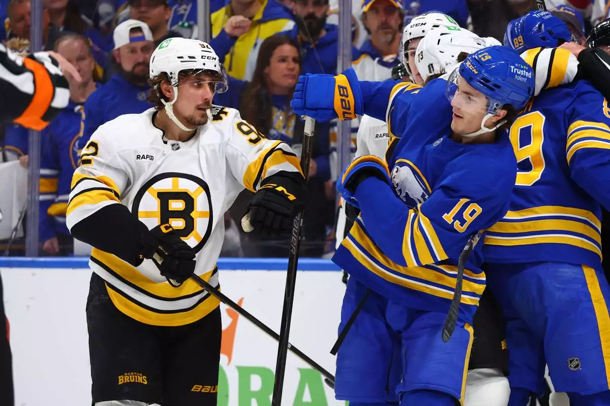 BUFFALO, N.Y. (AP) — Mattias Samuelson broke a tie with 3:24 left and Buffalo overcame a two-goal deficit in the final eight minutes to beat the Boston Bruins 4-3 on Sunday night in the Sabres’ first playoff game in 15 years.