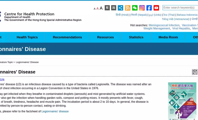 The public may visit the CHP'sLD page, theCode of Practice for Prevention of LDand theHousekeeping Guidelines for Cold and Hot Water Systems for Building Managementof the Prevention of LD Committee, and the CHP'srisk-based strategyfor prevention and control of LD.