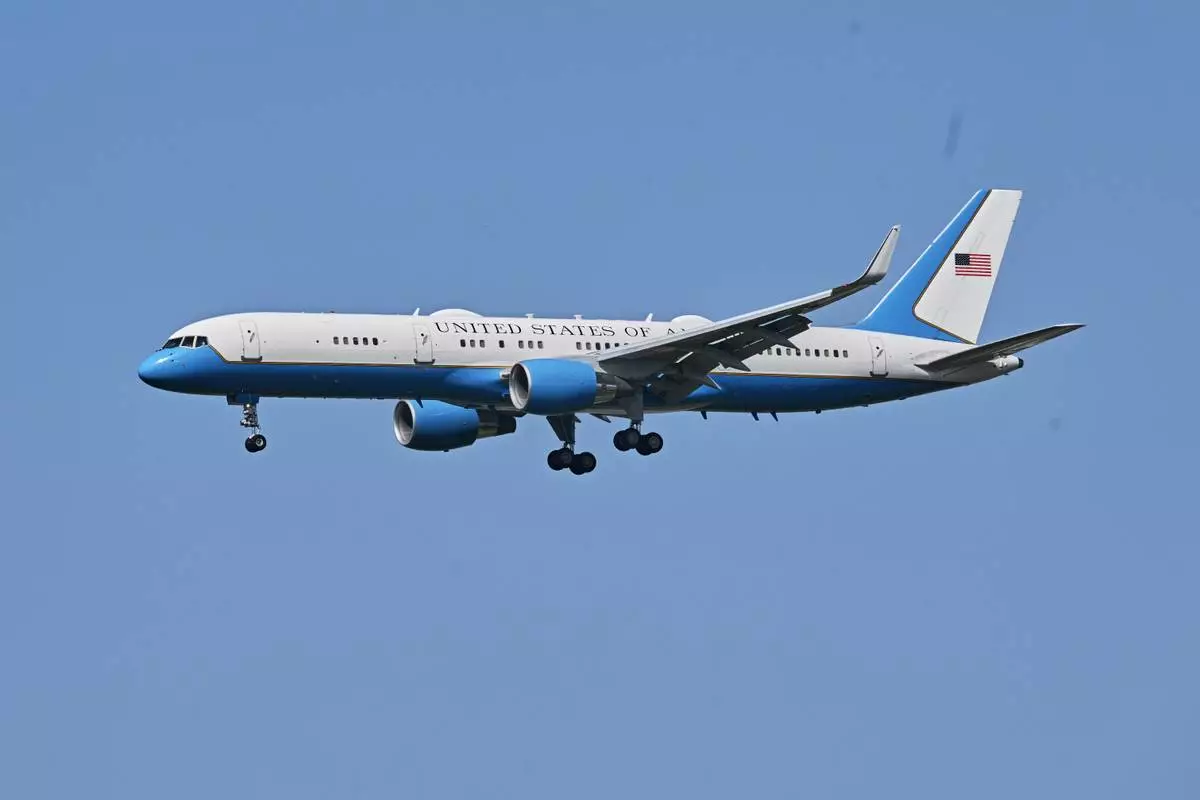 A U.S. Air Force Boeing C-32 plane approaches landing at Nur Khan airbase ahead of second round of negotiations between the U.S. and Iran, in Rawalpindi, Pakistan, Monday, April 20, 2026. (AP Photo/Ehsan Shahzad)