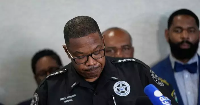 Shreveport Marshal James Jefferson speaks during a news conference about the children were killed during a mass shooting the day before in Shreveport, La., Monday, April 20, 2026. (AP Photo/Gerald Herbert)