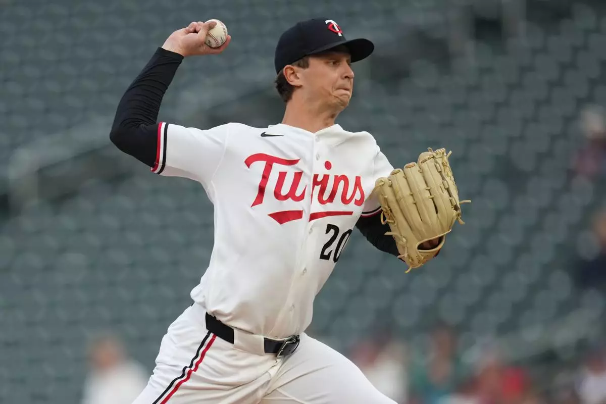 Minnesota Twins starting pitcher Mick Abel (20) delivers during the first inning of a baseball game against the Boston Red Sox Tuesday, April 14, 2026, in Minneapolis. (AP Photo/Abbie Parr)