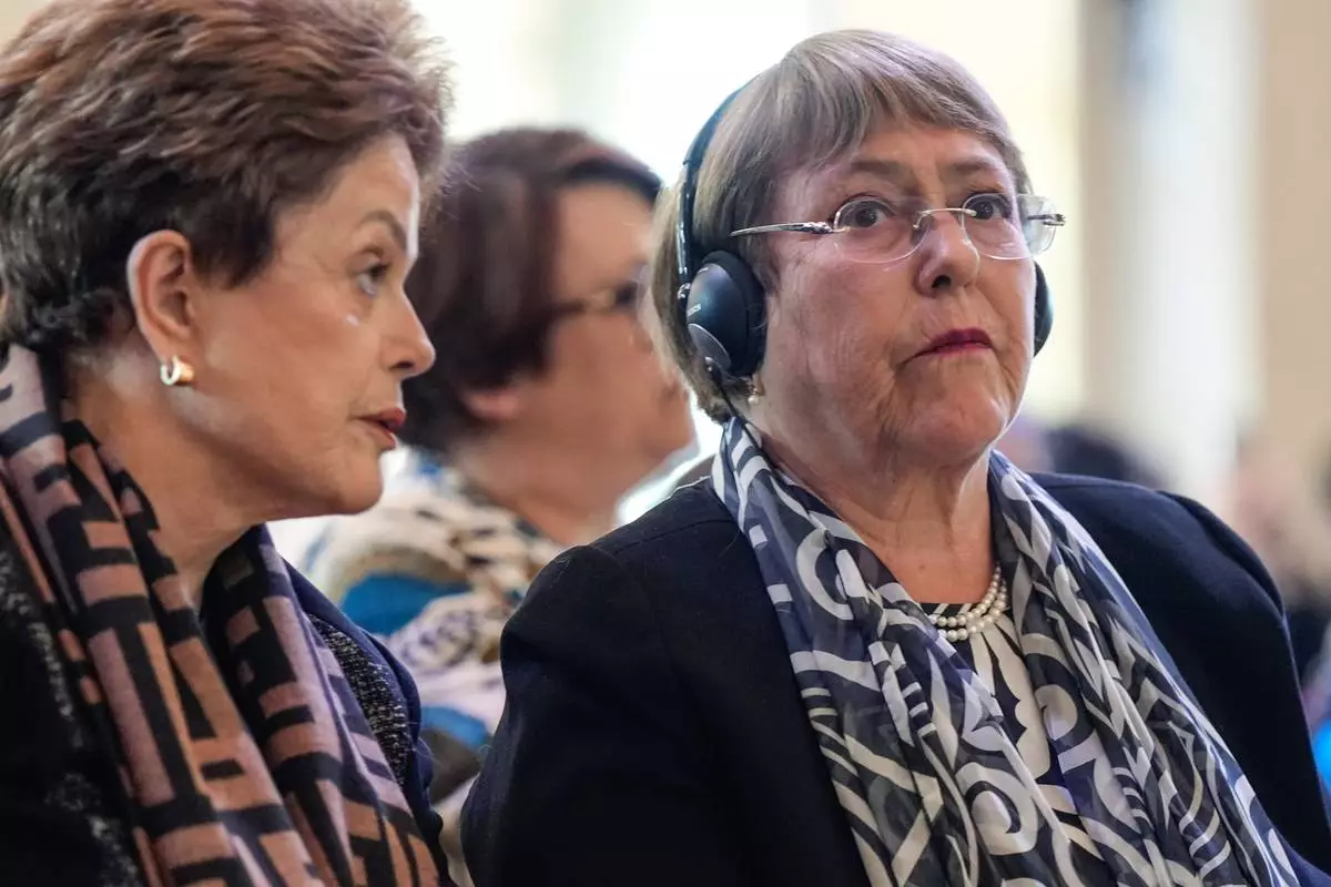 FILE - Chile's former President Michelle Bachelet attends an International Women's Day event at Paris City Hall, March 8, 2024, in Paris. (AP Photo/Lewis Joly, File)