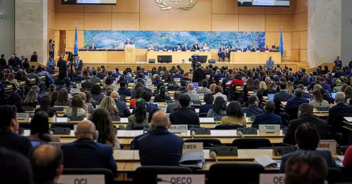 FILE - U.N. Secretary-General Antonio Guterres speaks during the opening of the 61st session of the United Nations Human Rights Council at the European headquarters of the United Nations in Geneva, Feb. 23, 2026. (Valentin Flauraud/Keystone via AP, File)