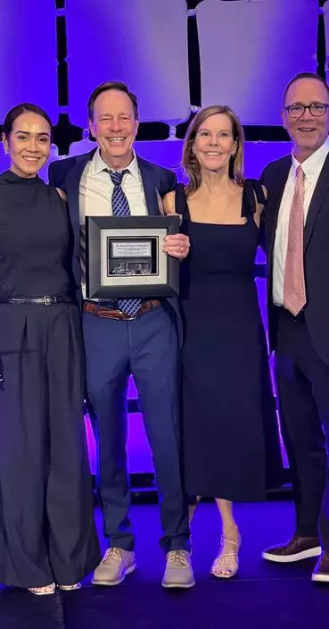 U-Haul International President John "J.T." Taylor, pictured center-left holding the TRALA Legacy Award, was honored for his career contributions on April 15 in Scottsdale. Taylor is flanked by (L-R) Aey Cook, wife Shannon Taylor, and U-Haul VP of Government Relations Joe Cook.