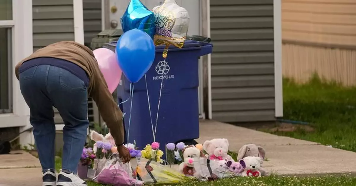 A person leaves a gift at a makeshift memorial on the front lawn of the home where children were killed during a mass shooting the day before in Shreveport, La., Monday, April 20, 2026. (AP Photo/Gerald Herbert)