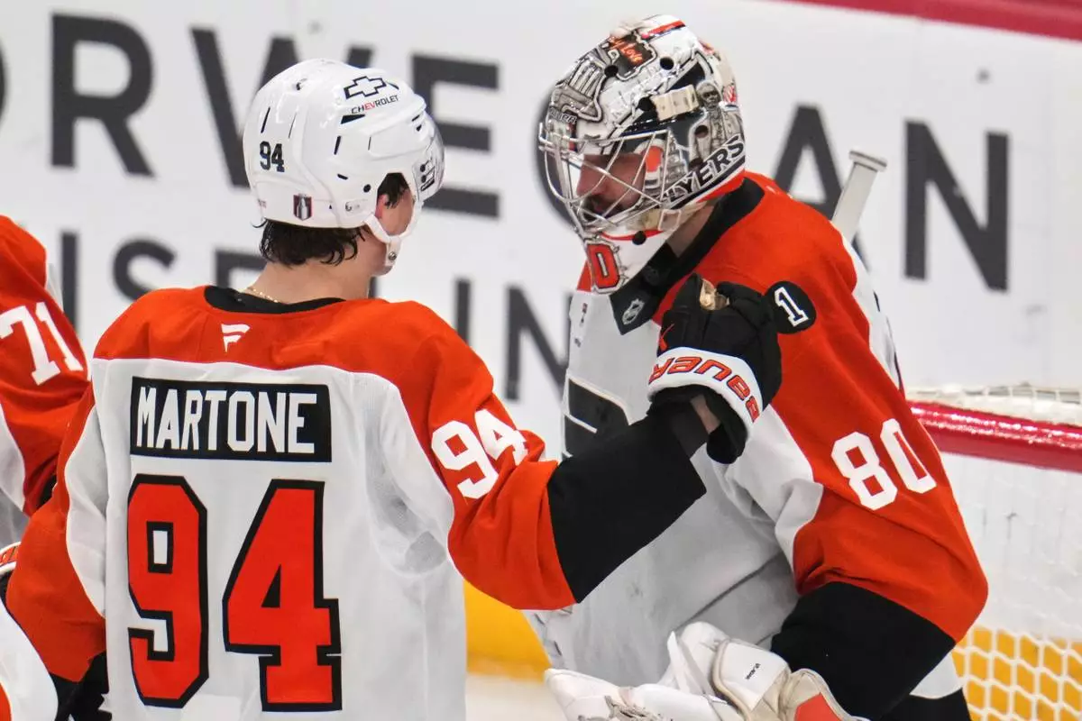 The 19-year-old Martone became the sixth-youngest player in NHL history to score in each of his first two playoff games when he beat Stuart Skinner deep into the second period to put Philadelphia in front. Garnet Hathaway added a short-handed goal a few minutes later, and Luke Glendening chipped in an empty-netter late in the third.