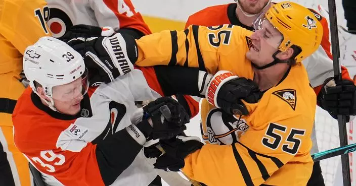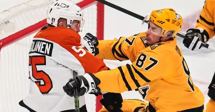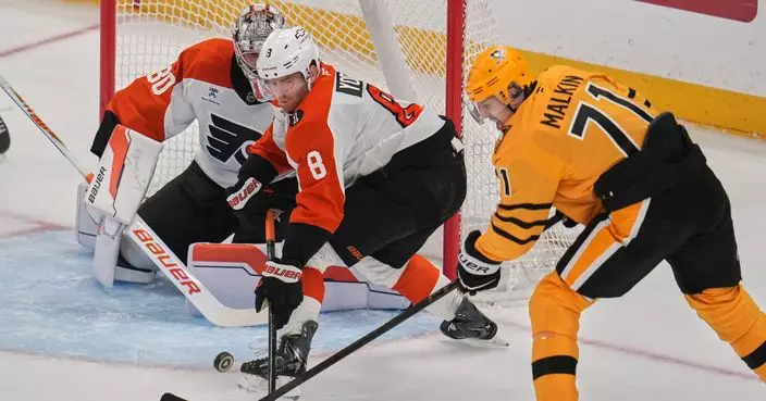 PITTSBURGH (AP) — Dan Vladar stopped 27 shots, rookie Porter Martone scored for the second straight game and the Philadelphia Flyers shut out Sidney Crosby and the Pittsburgh Penguins 3-0 on Monday night to take a 2-0 lead in their best-of-seven first-round series.