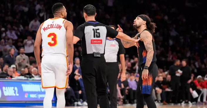 NEW YORK (AP) — CJ McCollum scored 32 points and the Atlanta Hawks rallied to stun the New York Knicks 107-106 on Monday night, tying their first-round playoff series at one game apiece.