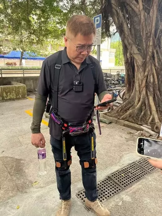 Mr. Tam, a resident of Wang Sun House who arrived fully equipped to retrieve his belongings, explained that he spent several thousand dollars on an exoskeleton supposedly designed to reduce the strain of walking. Living on the 17th floor, he was worried about the physical exertion of climbing the stairs. He had tried walking from the 10th to the 30th floor with the support of the exoskeleton and felt that "the effort was reduced by about half, but the shortness of breath and physical exertion remained unchanged."