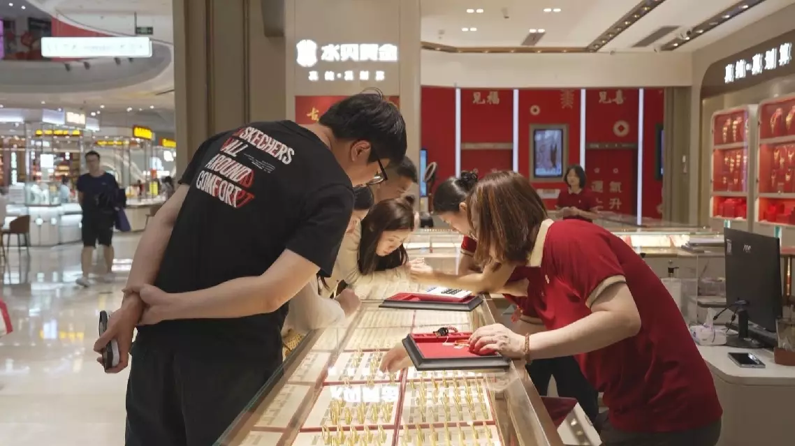 At the Shuibei market, a gold jewelry manufacturing and trading hub in the southern metropolis of Shenzhen, despite many still shopping for gold jewelry at the mall, the atmosphere remains notably more subdued than before.