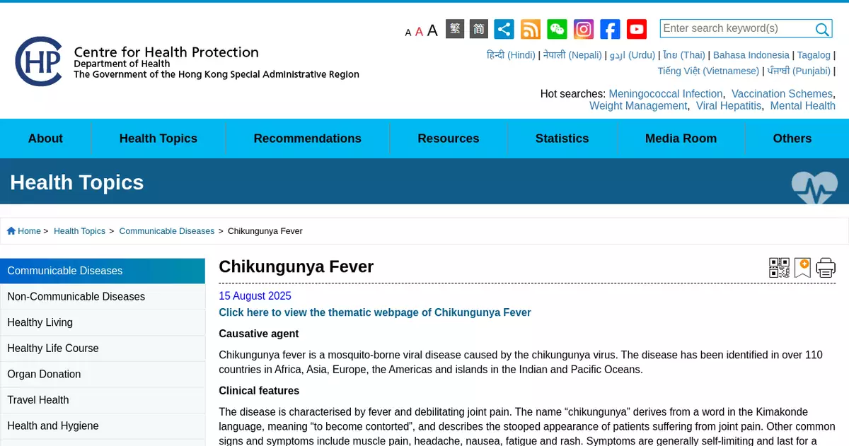 CHP actively follows up on local case of dengue fever Source: HKSAR Government Press Releases