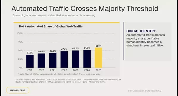 Bots and automated traffic now account for roughly 58% of global web requests, officially tipping into the majority and climbing fast in 2026 as agents proliferate. With bots outnumbering humans online, proof-of-human is quickly becoming essential infrastructure.