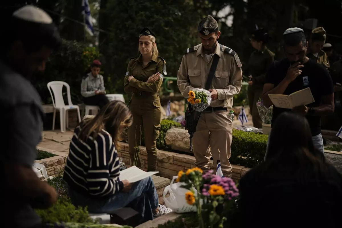 From Jerusalem to Tel Aviv and Latrun, families, soldiers and civilians place flags and flowers on graves during Israel's annual Memorial Day. Israelis observe moments of silence, visit military cemeteries and gather at memorial sites to commemorate fallen soldiers and all those killed in the country's conflicts, including victims of the Hamas-led militant attack on southern Israel on Oct. 7, 2023.