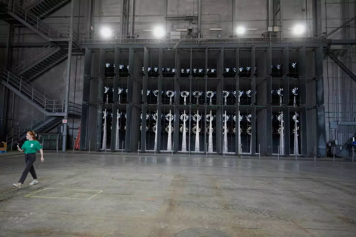 As wildfire danger increased in recent years, they sometimes turn the six-story tall wall of 105 fans stacked on top of each other to blow out of the wind tunnel's massive doors and spread fire.