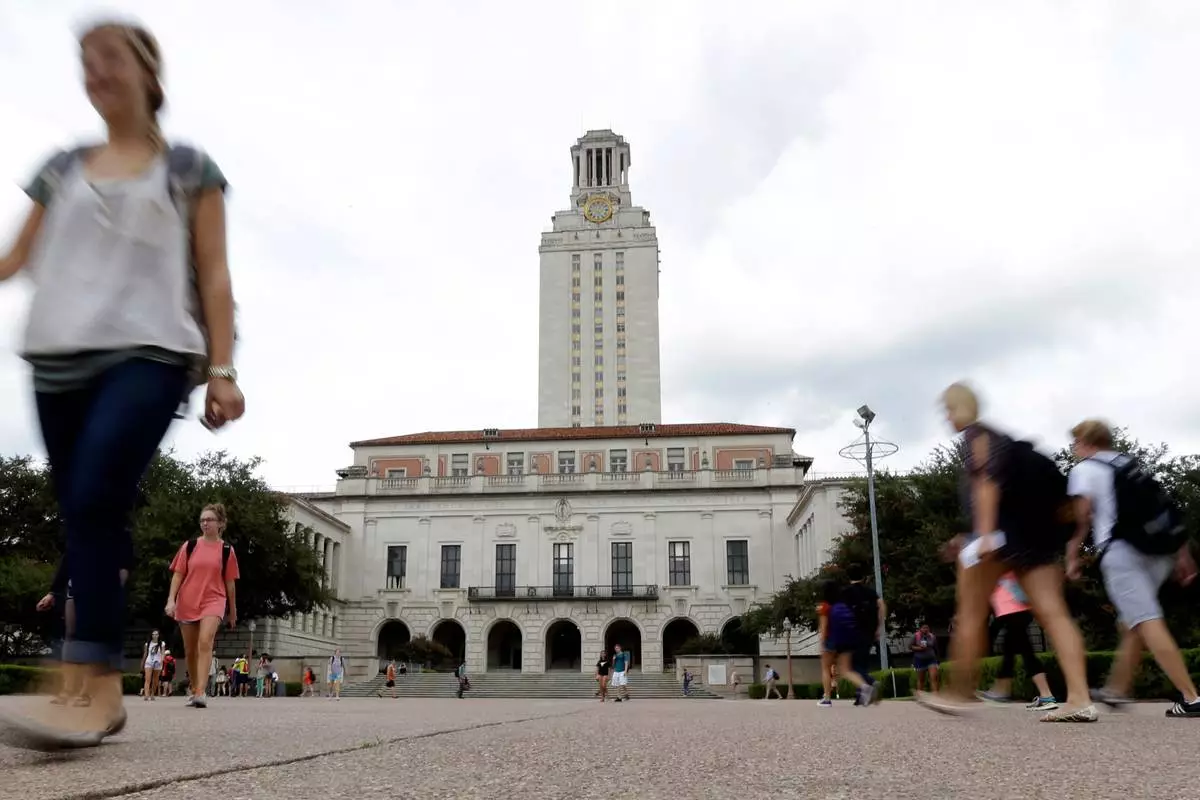 FILE - Students walk through the University of Texas at Austin campus near the school's iconic tower, Sept. 27, 2012, in Austin, Texas. (AP Photo/Eric Gay, File)