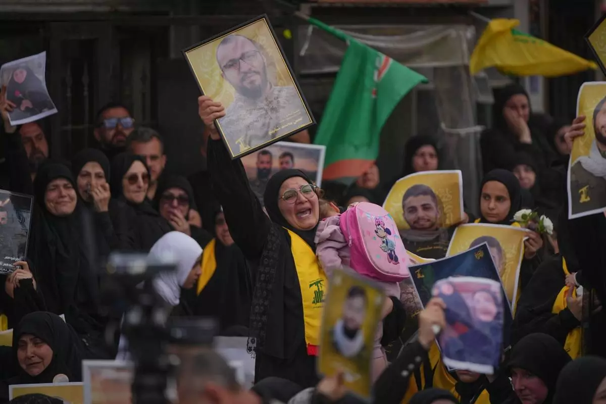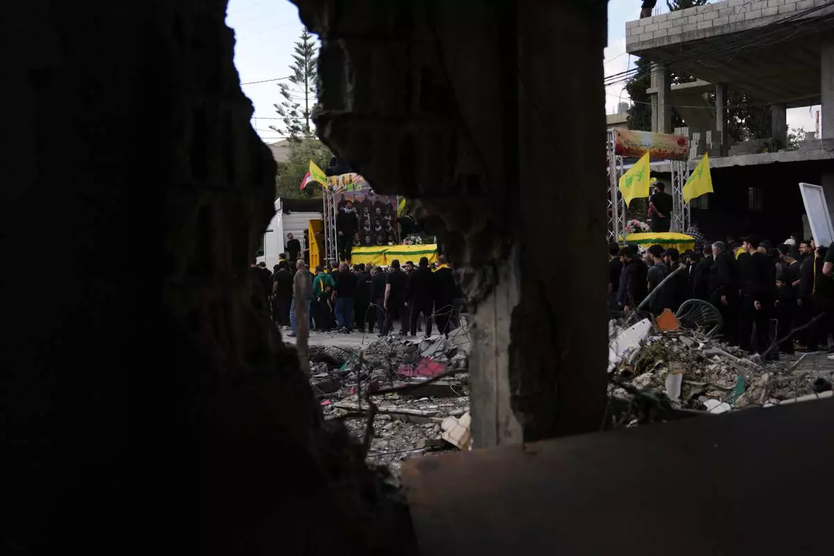 KFAR SIR, Lebanon (AP) — Funerals in southern Lebanon are burying fighters from the militant Hezbollah group, Lebanese civilians and paramedics killed in Israeli strikes before the latest Israel-Hezbollah ceasefire took effect.