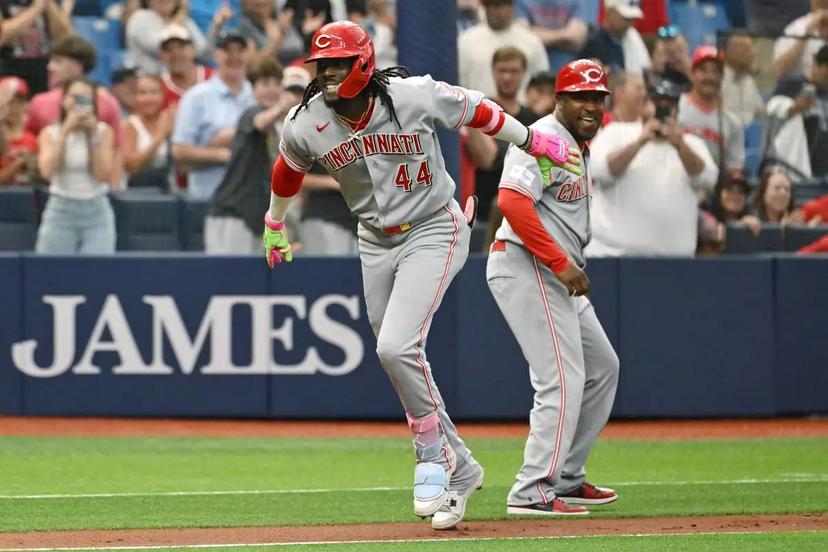 De La Cruz, who went 3 for 6 with five RBIs, hit a two-run homer to begin the scoring in the first inning and he added a solo shot in the ninth for his eighth of the season to make it 12-2. It was De La Cruz’s sixth career multihomer game, passing Pete Rose for the most in Reds history by a switch-hitter.