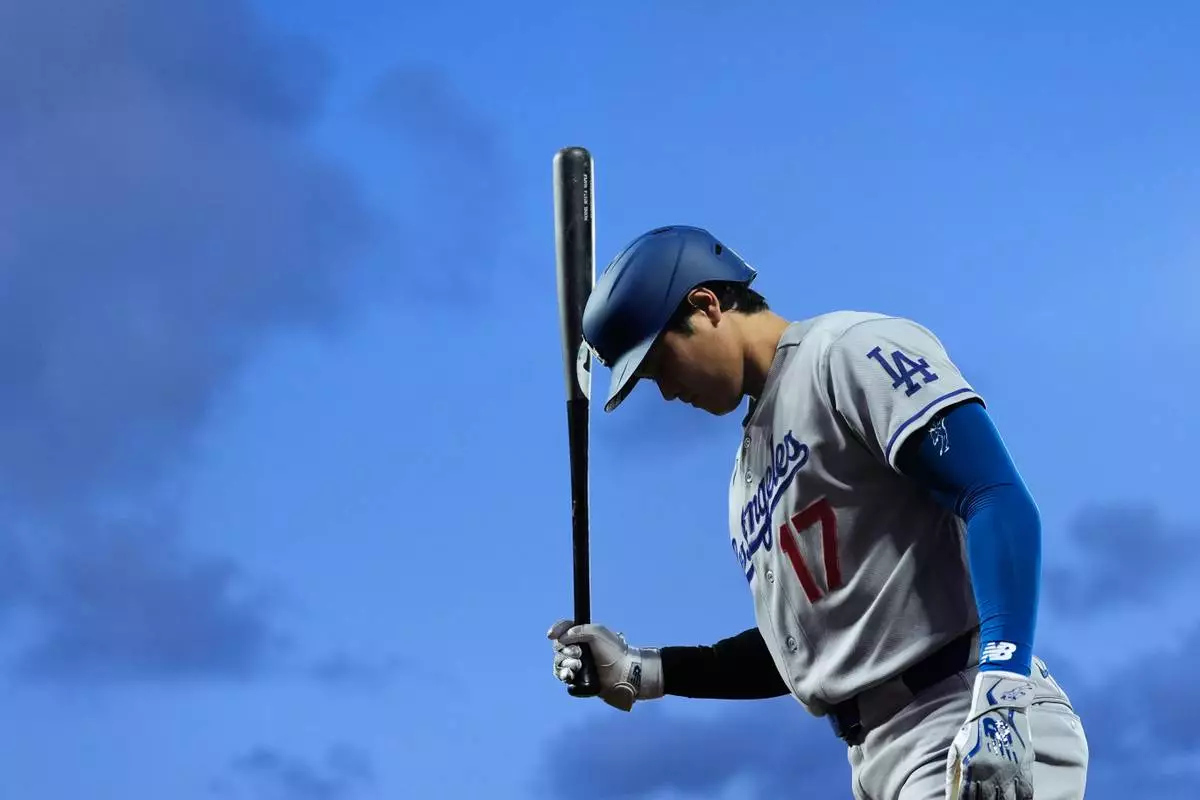 Los Angeles Dodgers' Shohei Ohtani waits for his at-bat against the San Francisco Giants during the fifth inning of a baseball game Tuesday, April 21, 2026, in San Francisco. (AP Photo/Godofredo A. Vásquez)